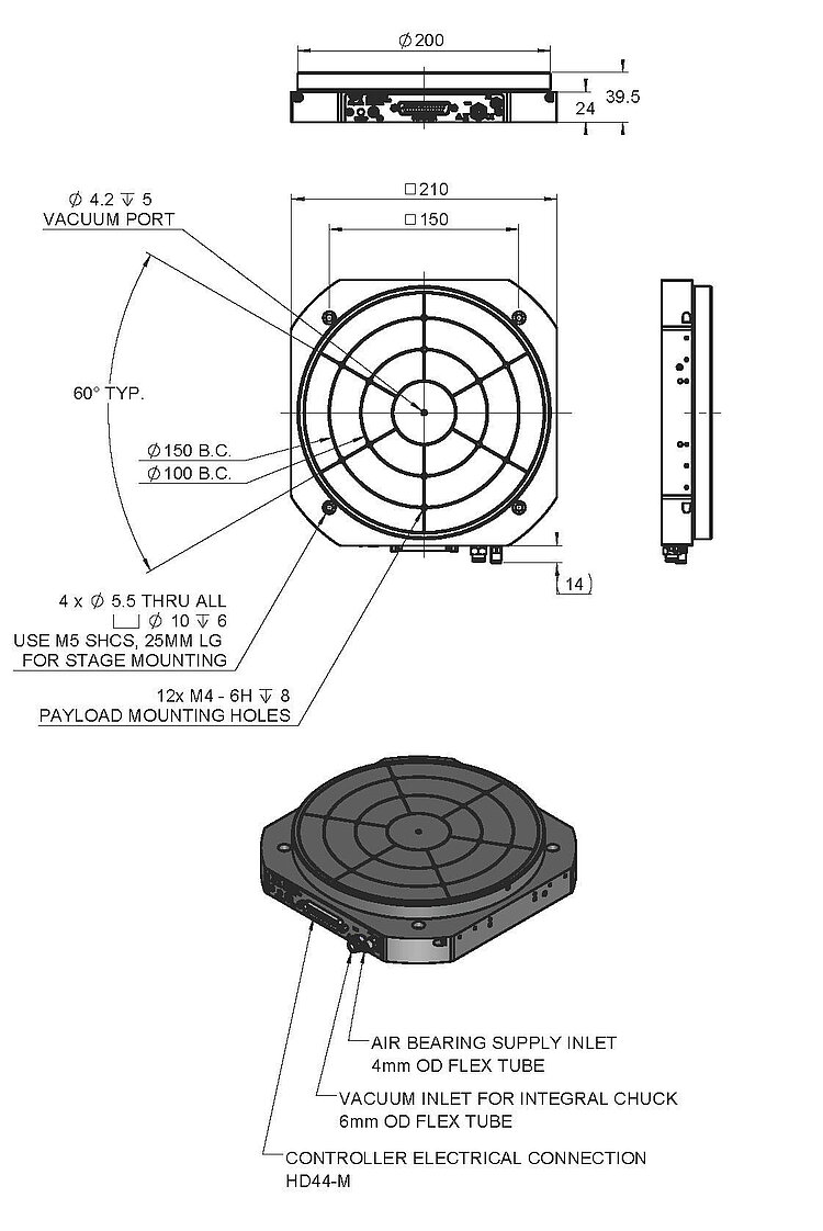 • Friction-free operation, air bearings lockable