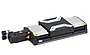 High-load linear stage; synchronous servo motor to 320 V; 102 mm travel range; 450 N load capacity; 300 mm/s maximum velocity; ball screw; incremental rotary encoder, 20000 counts/rev resolution, A/B quadrature, RS-422; 166 mm width