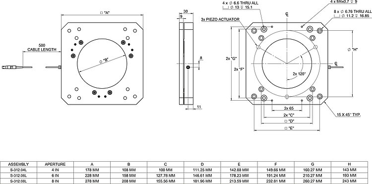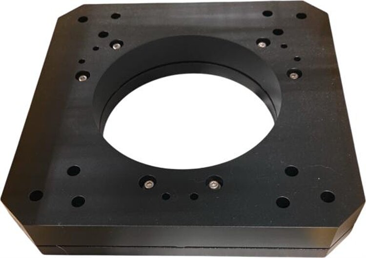 Phase shifter for optics, with tip/tilt error correction; 15 µm travel range (open loop); clear aperture, Ø 311 mm; bare wire strands; 0.5 m cable length