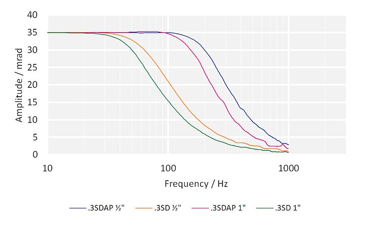 | Resonant frequency in θY, under load with glass mirror (Ø 12.5 mm; thickness 3 mm) | 1.6 kHz | 1.6 kHz | — | ±20 % |