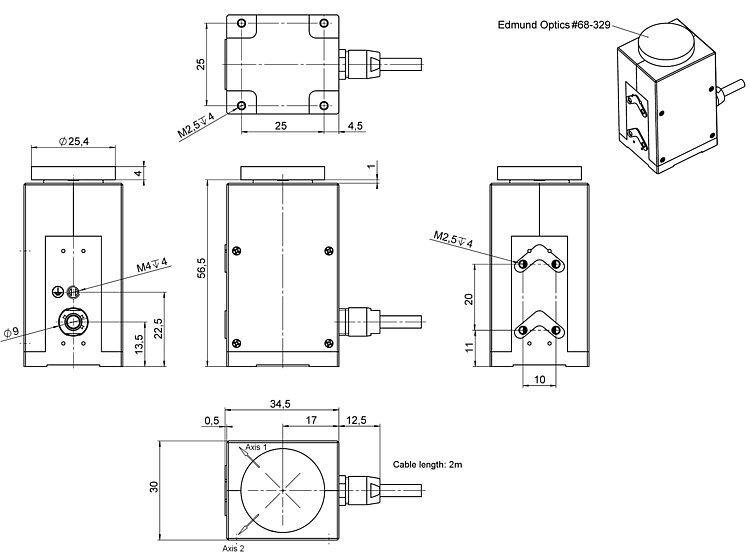 High-dynamics piezo tip/tilt platform; 35 mrad × 35 mrad rotational angle (θX × θY); SGS, direct position measuring; D-sub 37-pole (m); 2 m cable length; incl. mirror Ø 25.4 mm