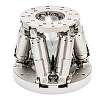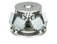Parallel-kinematic design for 6 degrees of freedom, making it significantly more compact and stiff than serial-kinematic systems, higher dynamics, no moved cables: higher reliability, reduced friction. Compact due to folded drive design. Suitable for vacuum environments to 10-6 hPa.