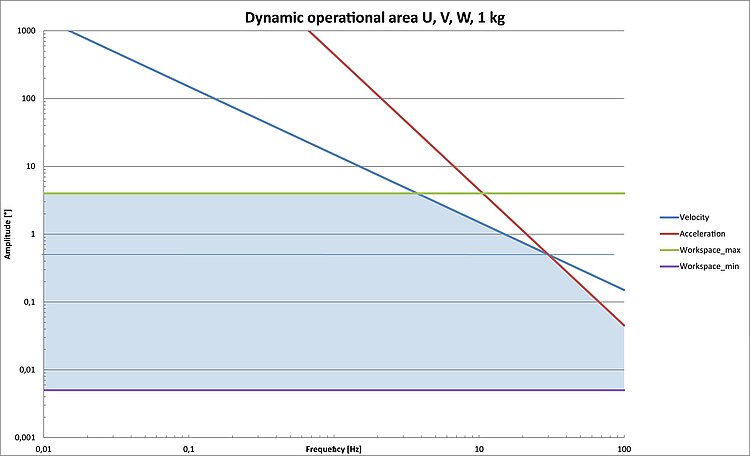High-dynamics motion hexapod; voice coil drive; 1 kg payload; 250 mm/s maximum velocity; flexures; high-performance power adapter; 3 m cable set