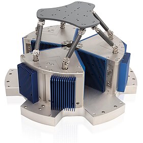 헥사포드는 X, Y, Z 세 가지 방향의 병진 운동 축과 ΘX, ΘY, ΘZ 세 가지 방향의 회전 운동 축의 6자유도로 하중을 이동, 위치 제어, 정렬할 수 있는 병렬 키네마틱(parallel-kinematic) 모션 플랫폼입니다. 스튜어트 플랫폼이라고도 하는 일반적인 구조의 헥사포드는 조인트를 통해 베이스 플레이트와 하중을 운반하는 모션 플랫폼에 연결된 6개의 길이 조절식 액추에이터로 구성됩니다. 병렬 키네마틱(parallel-kinematic) 설계가 적용된 헥사포드는 높은 반복 정밀도, 역동성, 안정성을 바탕으로 복잡한 다축 모션 프로파일을 구현할 수 있습니다. 크기 또한 매우 작습니다.