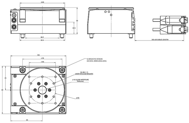 - Motion platform diameters of 85 mm, 110 mm, and 210 mm
