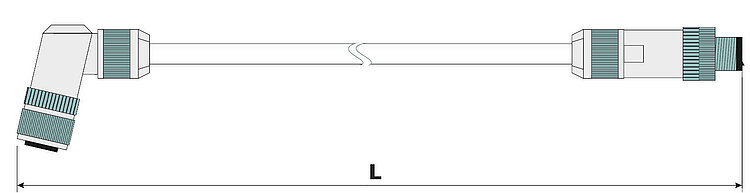 Power supply cable for hexapods, drag chain compatible, M12 m/f angled, 20 m