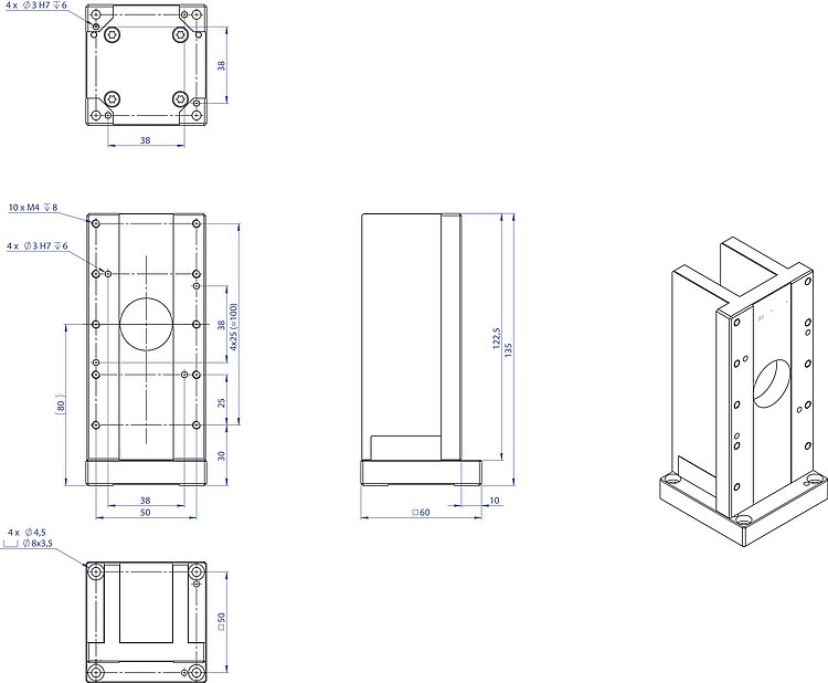 Adapter bracket for vertical mounting of L-8x6 stages; length 135 mm; incl. mounting kit
