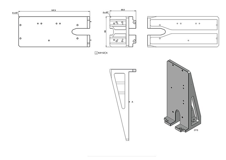 Mounting bracket for Z mounting of the N-332.24U(Y) onto a N-332 linear stage; vacuum-compatible to 10-9 hPa; nickel-plated aluminum; including mounting kit