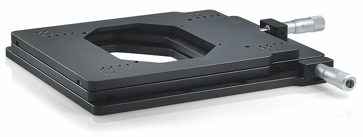 Linear stages adjust the laser beam in the TIRF microscope. Precision positioning of the sample is possible by combining two XY stages.